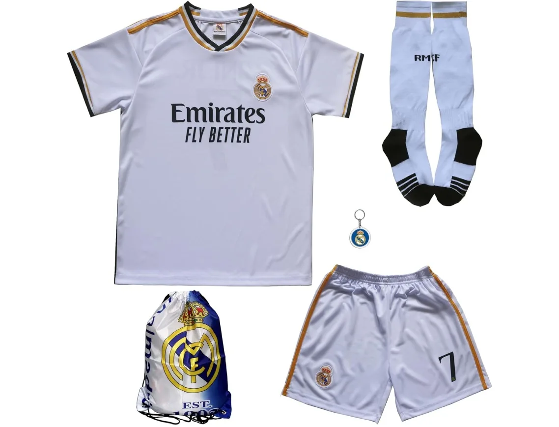 As passionate Real Madrid supporters, we felt a sense of grandeur when we put on the 2023-2024 home kit. The gold accents on the shoulders and navy blue details on the collar and sleeves evoke a feeling of prestige, perfectly befitting the club’s status as one of the world’s most successful football teams. The v-neck on the back proudly displays the words “HALA MADRID!” as a testament to our unwavering support for the team. Meanwhile, the away kit is designed not just for the pitch but also for the streets, with its vibrant tricoloured stripes and infinity graphic that represents the boundless love that fans have for their beloved team. It’s a truly stunning kit that captures the essence of Real Madrid’s spirit and passion.